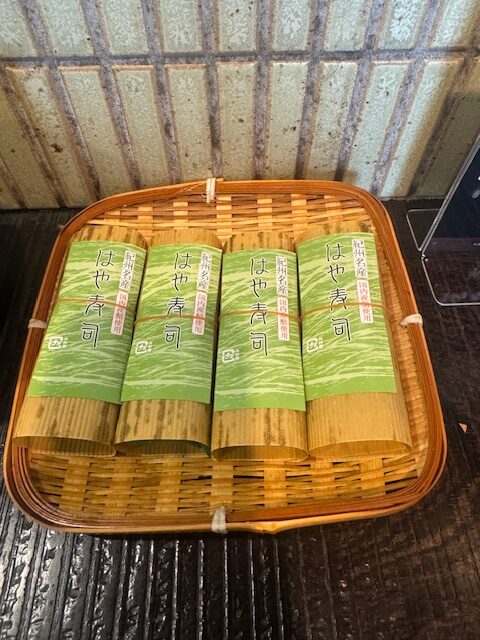 - 鯖寿司は見切れた左上のザルに置いてあります。
