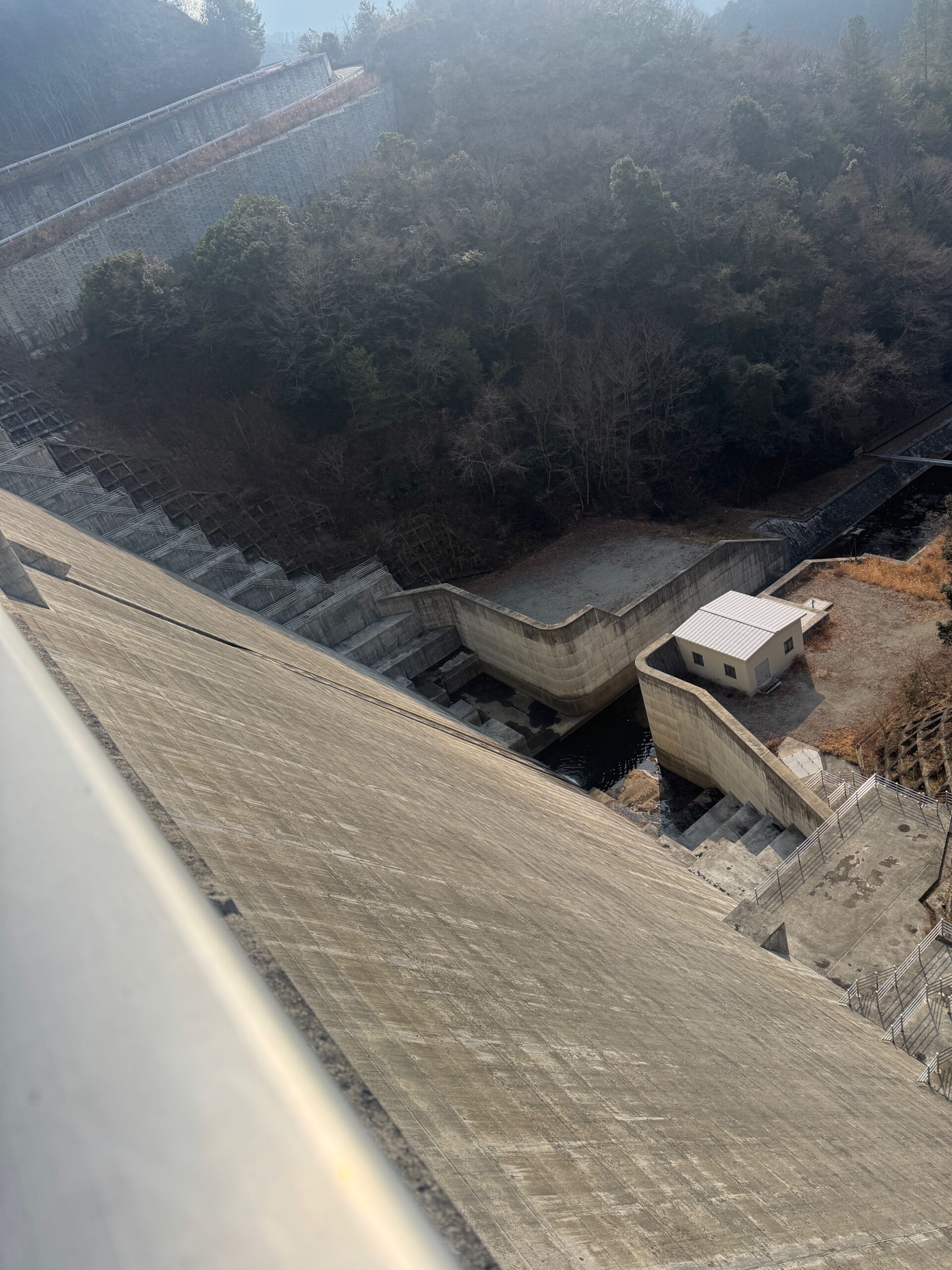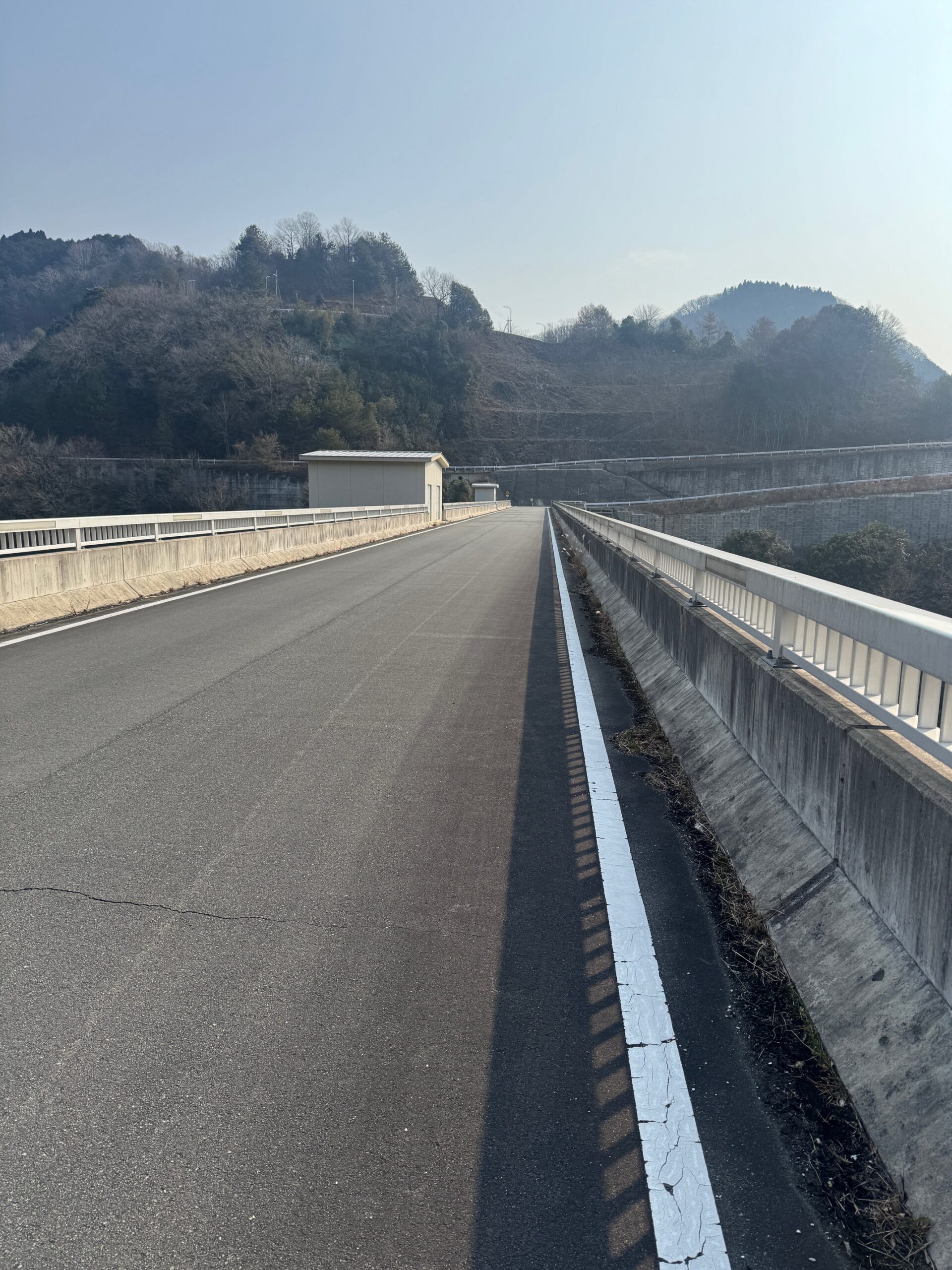 - ダムの真上。車で走れる。