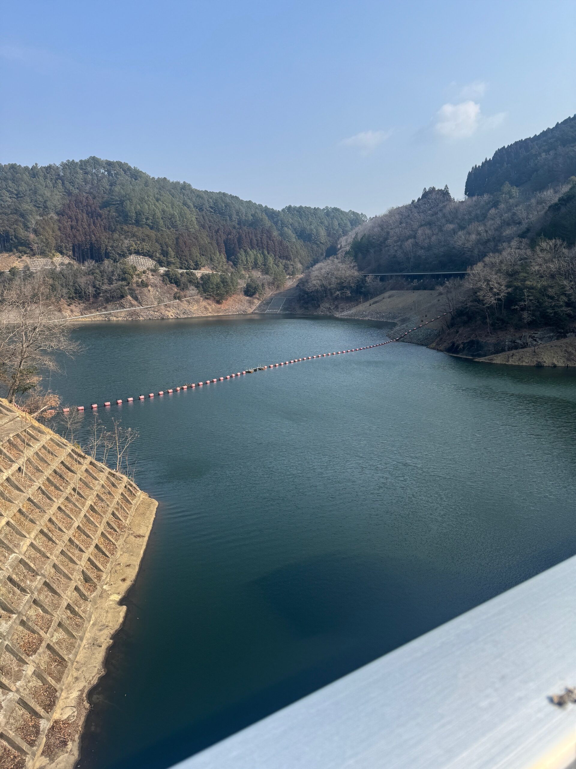 - ダムの真上。車で走れる。